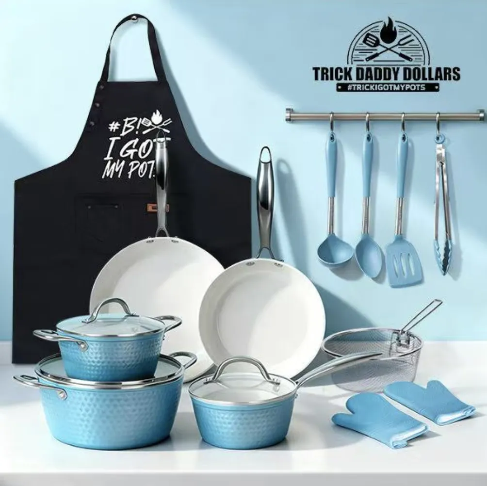 For years, people have watched Trick Daddy cook the way he lives—bold, real, and full of flavor. This set brings that same energy to your kitchen: premium ceramic cookware made for everyday meals and show-off moments.